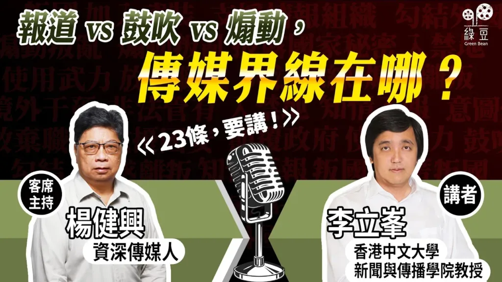 《綠豆》製作了一連五集的《23條,要講!》訪談節目,率先請來中大新聞與傳播學院教授 李立峯,帶大家了解條例對香港境內外傳媒影響的。