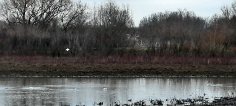這片人造濕地2016年開放,當中有三個觀鳥屋。我們在鳥屋中用望遠鏡看看鴨子划水,更看到久違了的小白鷺開心覓食,又見到成群的加拿大鵝,大大聲劃破長空飛過,真是賞心悅目。惟天氣仍寒冷,幸好有手套又戴帽,否則留守觀鳥屋一個多小時必定冷傷風!