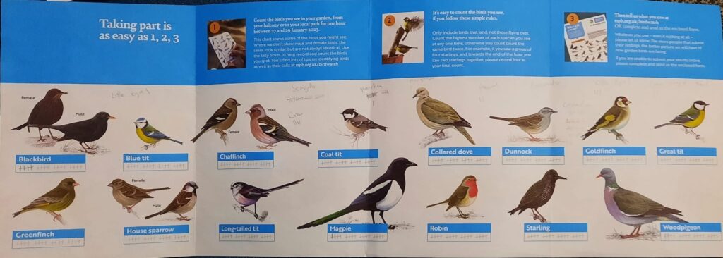 就在這時,大兒子說,學校響應皇家保護雀鳥協會(Royal Society for the Protection of Birds, RSPB)的呼籲,在1月27至29日這幾天,鼓勵學生參加一年一度的Big Garden Bird Watch雀鳥普查活動。參加者可下載協會的常見鳥類圖鑑,根據建議的觀鳥守則,在一個小時內記錄你所在地點見到雀鳥的種類、數目,再上載雀鳥普查數據庫。