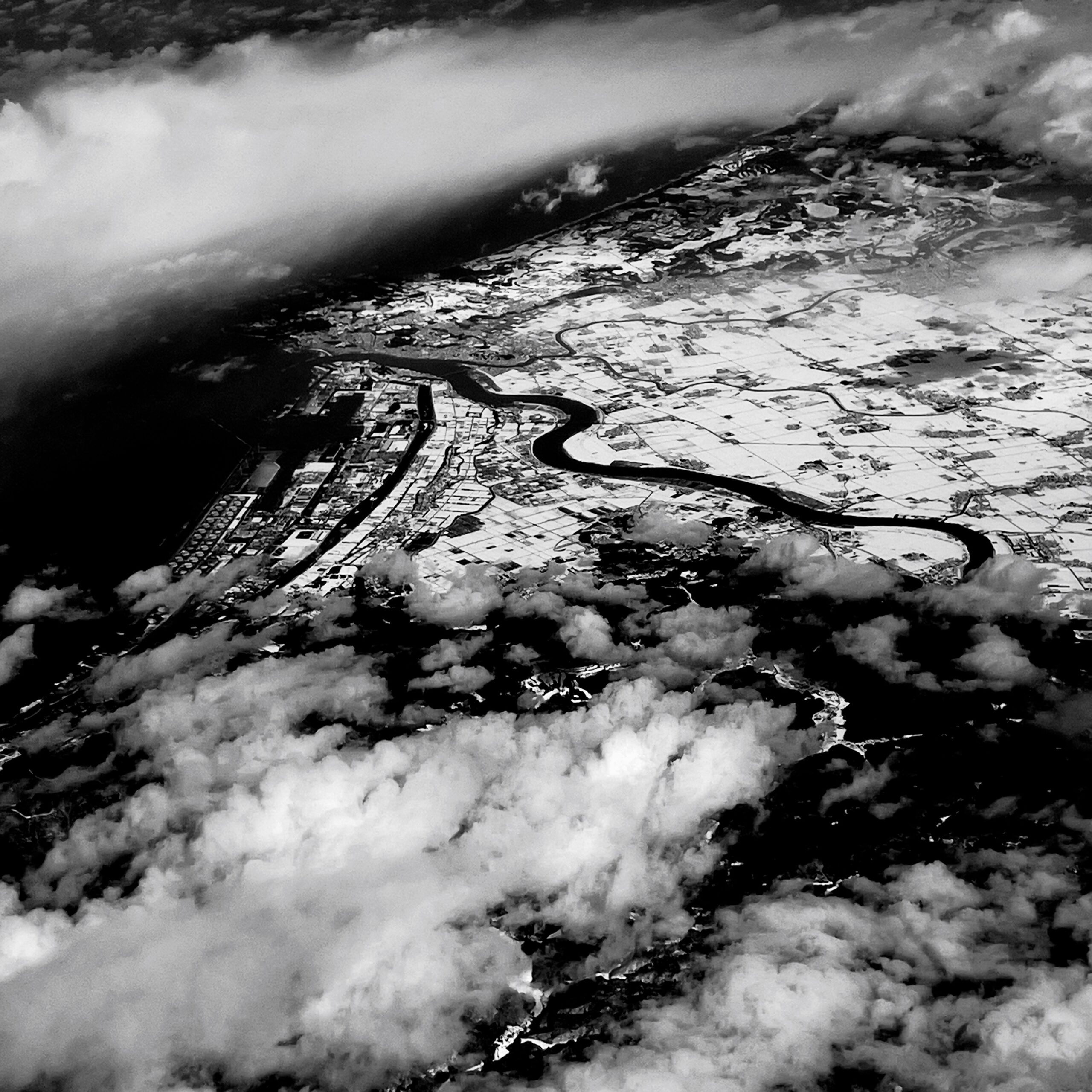 機艙內為了讓乘客得以休息,窗簾被放下,無法在座位上拍攝影像。然而和機組人員溝通後,允許我在服務處的窗口拍照,於是我選擇不閉眼,也不沉迷於電影,專心享受這難得的拍攝機會。