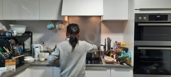 做爸的,工作的公司常要一人之境。相信他也很享受電話訊息中的暖意、笑意。但他身邊的我有時仍會因為煮食而發脾氣,他也總是適時過來幫忙,減少我的焦慮。暑假都有不少的好友從香港來英國探親探路,或road trip途經小城造訪。有一次,朋友兩夫婦來到,丈夫跟孩子還未回家,我一面傾談,一面七手八腳地煲、煎、焗、炸,我致電老公幫我買些東西回家,並囑咐他們快些回家,幫忙招呼朋友,因為我怕一亂煮餸就會出事。