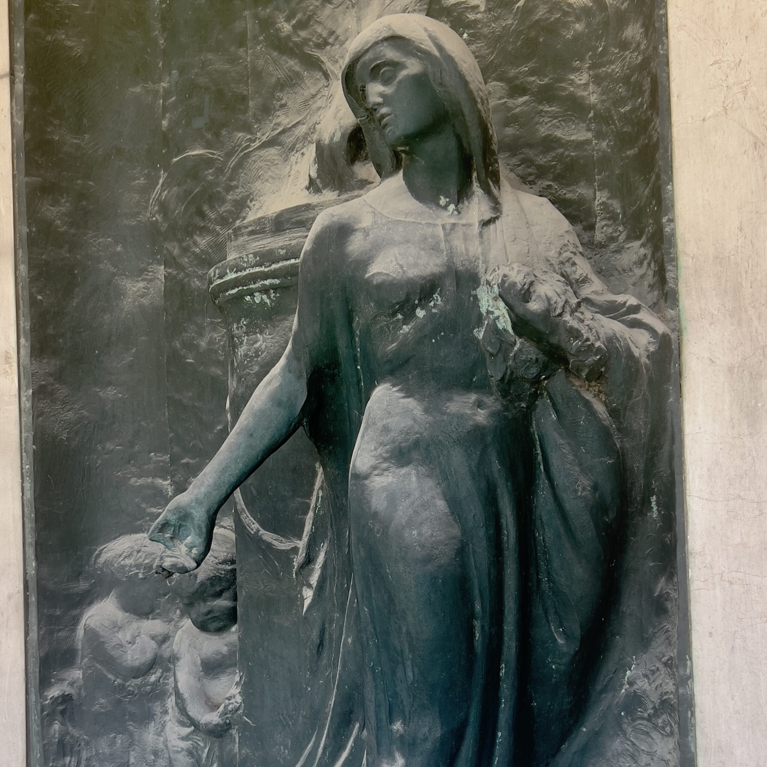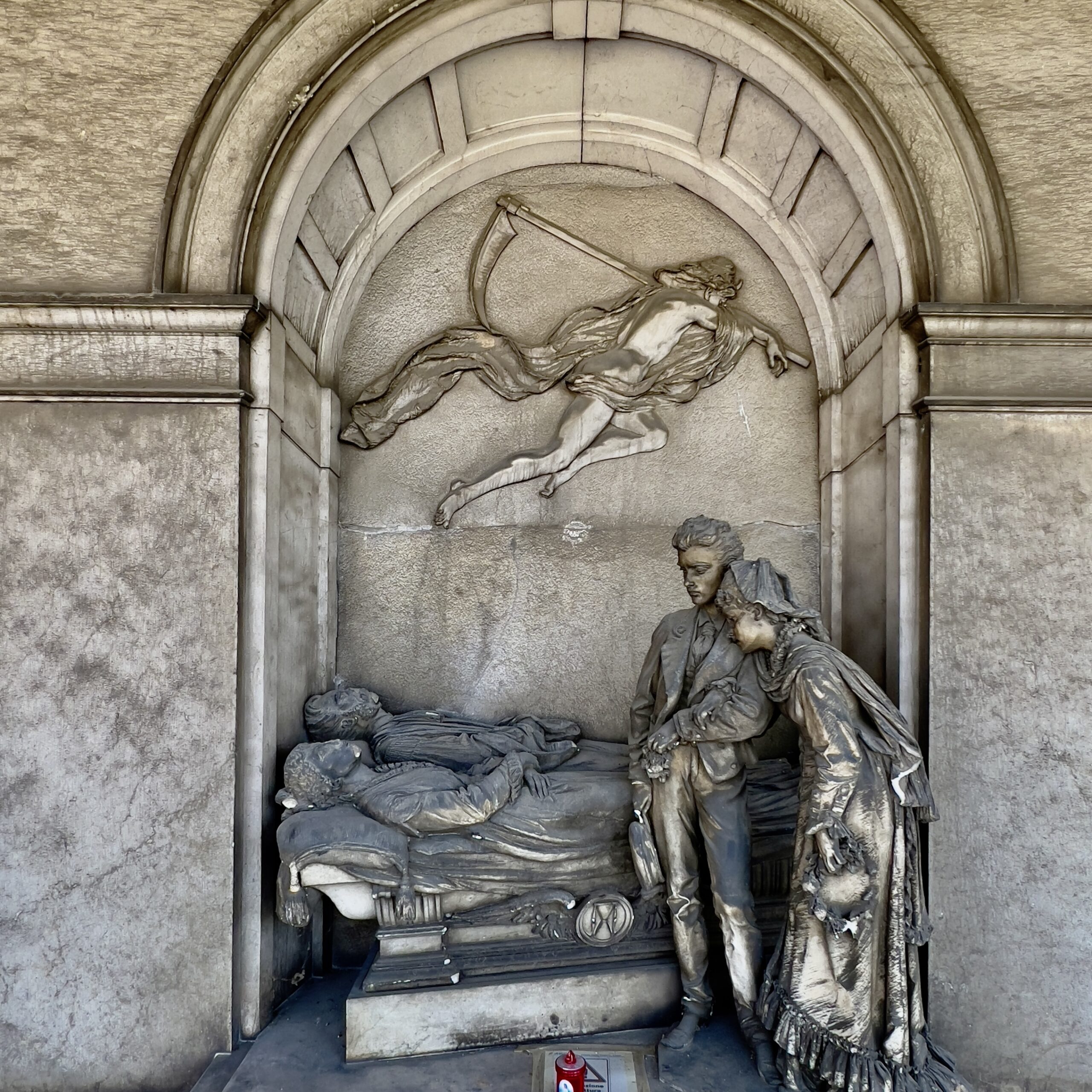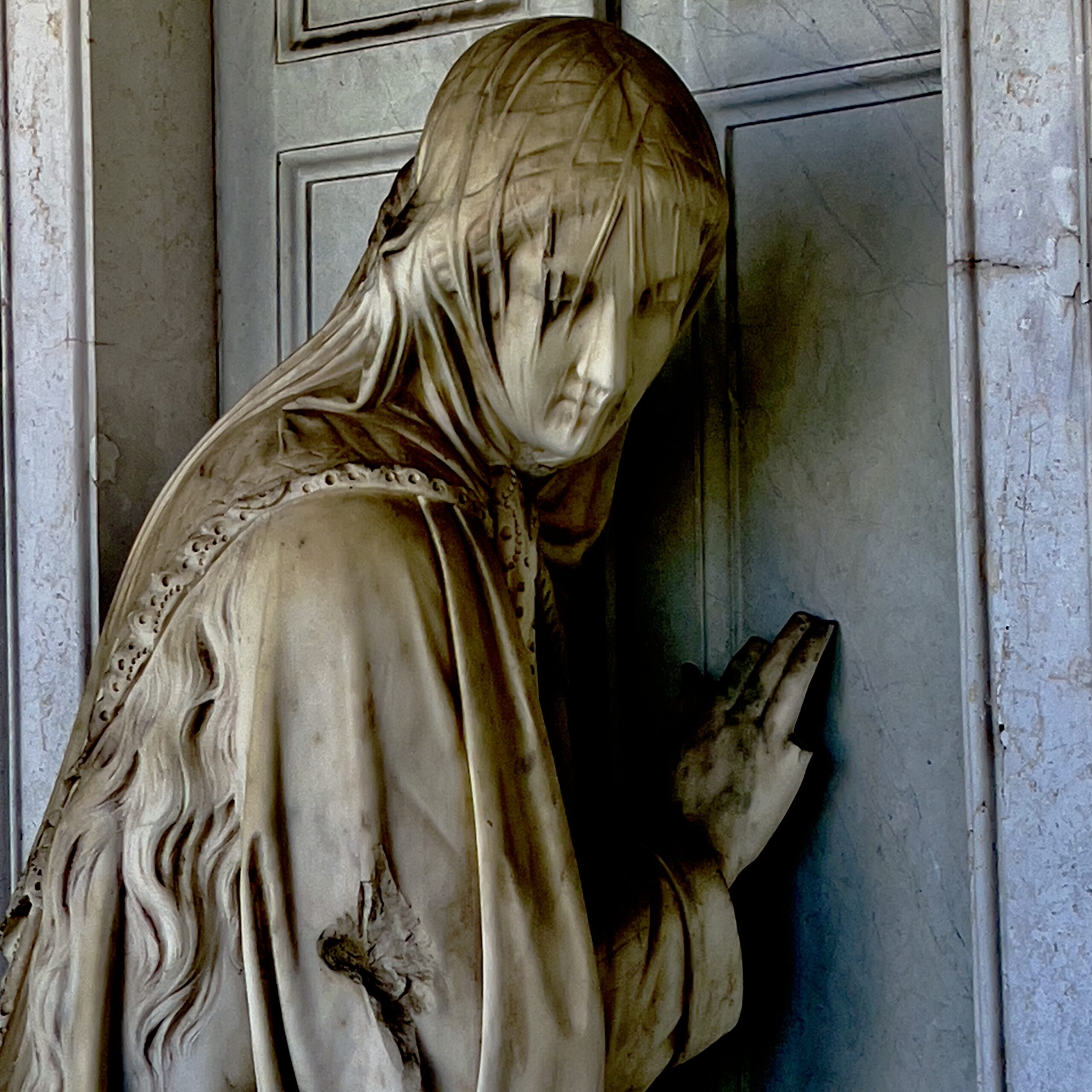 墓園的雕塑主要是新古典主義風格,儘管墳場面積極大,原創性的雕像不太多,也沒有如在米蘭或熱那亞的情色雕像,雖然仍強調人像的感情,但無強烈的悲傷表現,對死亡也沒有特別的恐懼,有種淡然無奈的感覺。