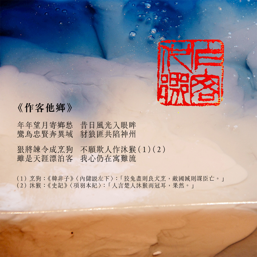 黃顯(筆名)是我教學以來最有潛質的學生之一。他領悟力強、對學術研究鍥而不捨、本科未畢業已能寫出碩士班的研究論文,前途未可限量。他能賦詩懂格律,我這幾年奏刀刻章,以新書題目和時局感受入印文,黃顯亦以賦詩回應,是以本輯將他為我創作的詩、印章和抽象相片一同刊出。