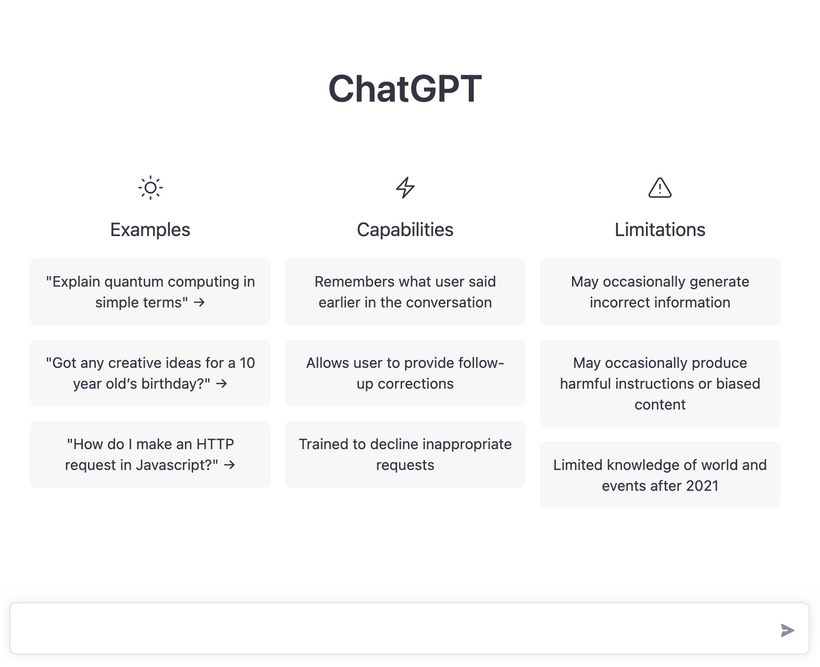 ChatGPT的介面完全就是一個聊天畫面,幾乎不用學習使用,直接打入口語式的指令便可。雖然中英文(甚至拉丁文)也可,但測試過後,英文效果較佳,以下用英文示範。