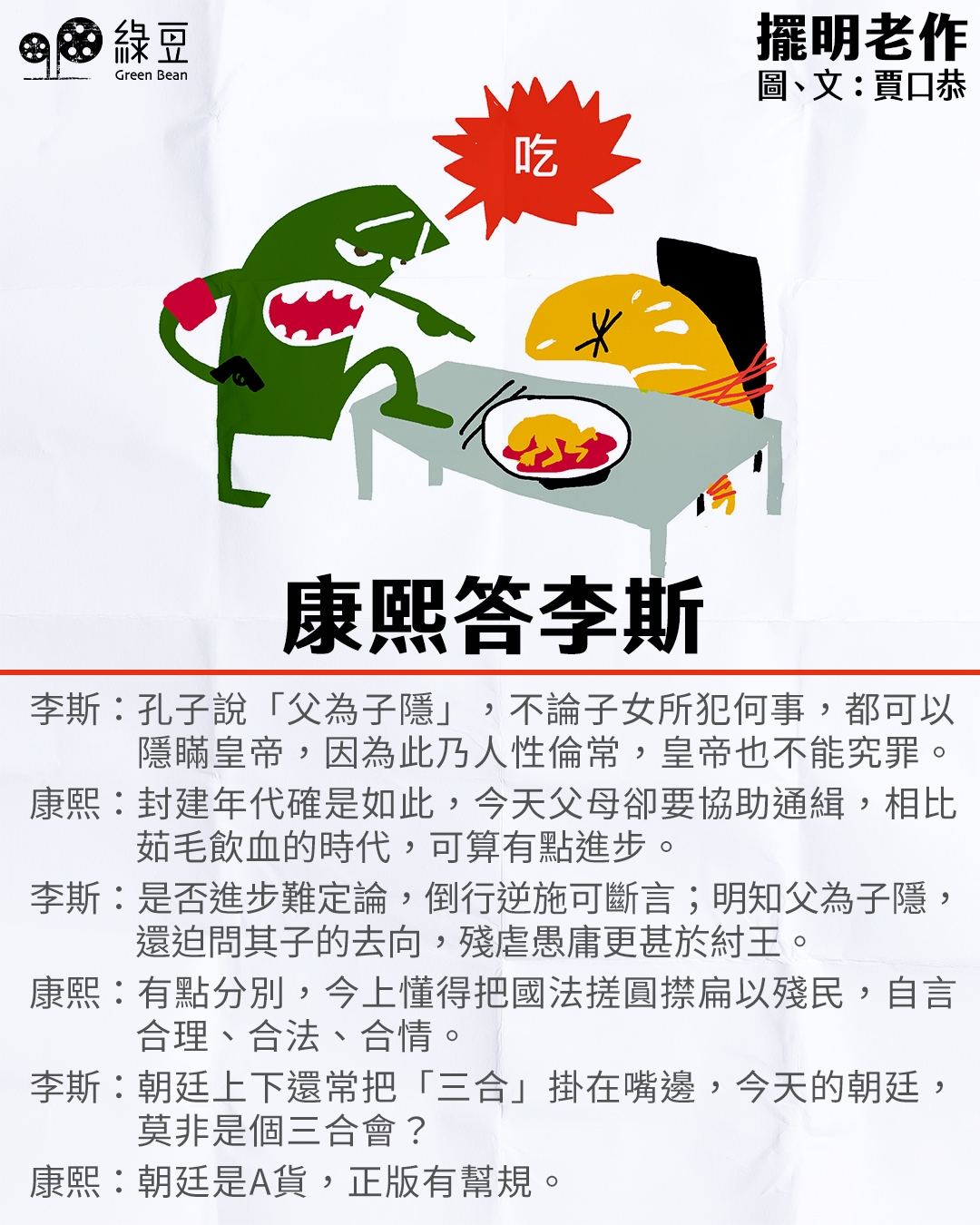 破土再有新專欄,恭迎殿堂級的賈口恭來到綠豆破土這塊自由之地,本著真嘢唔講得的精神擺明老作,與我們笑到最後。