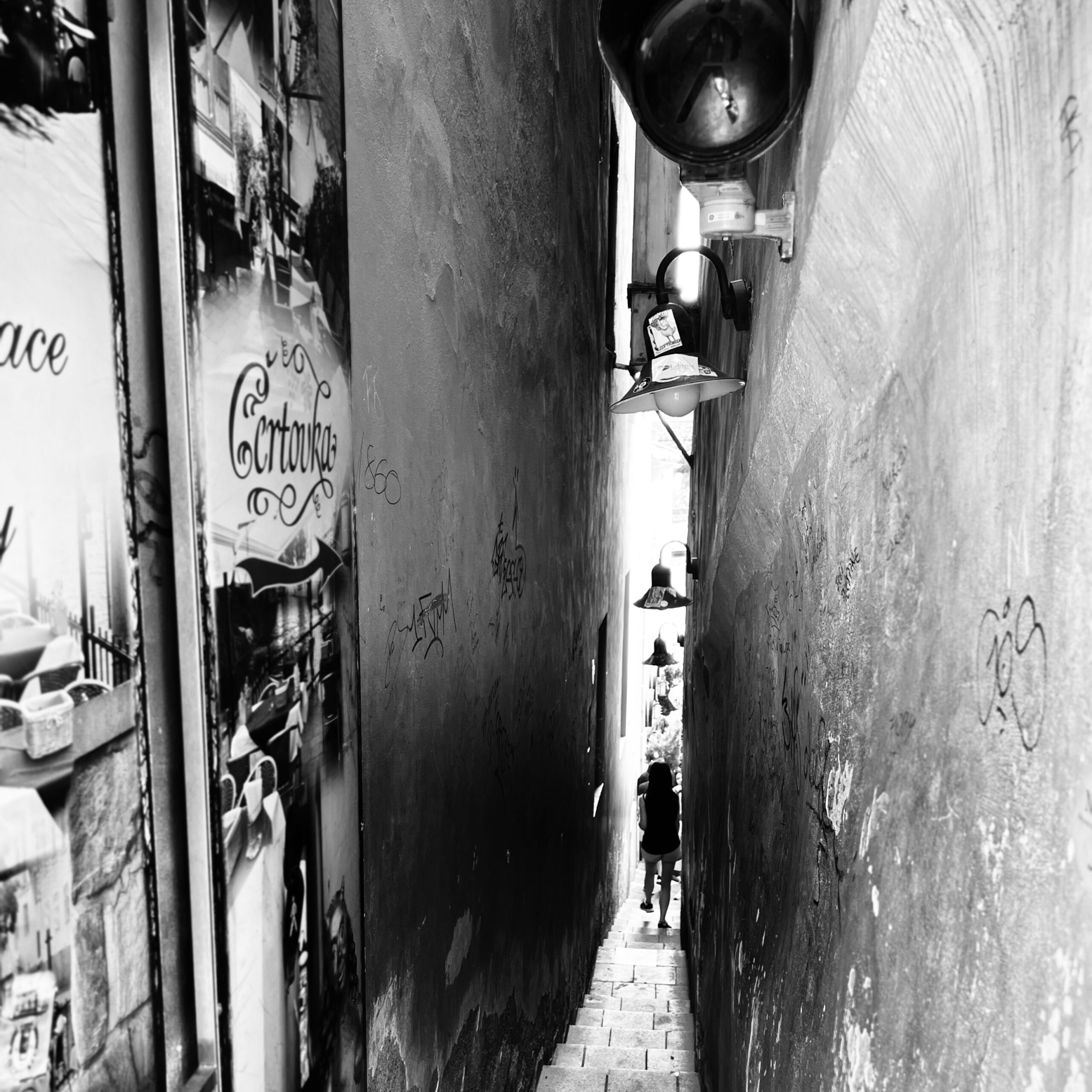 走在歐洲的小街上,古老的石頭建築猶如過去的回聲,透過黑白的畫面,讓人更能品味歷史的厚重。行人匆匆而過,透過他們的影子與剪影,彷彿訴說著不同的故事。