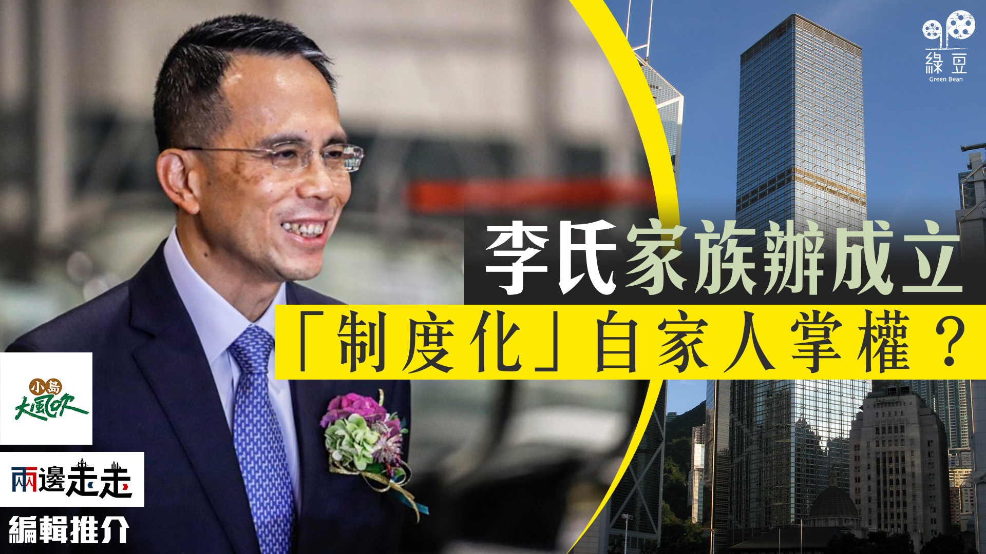 收看節目 長和系李家第二代統帥李澤鉅,突然以回應傳媒查詢方式,公開表示「會就於香港成立家族辦公室一事制度化」,並指「管理人包括多年友好同事及家族成員」。李氏家族由家長李嘉誠發跡起,已經在香港設立各式各樣投資,成立家族辦公室﹐會否多此一舉? 李嘉誠次子李澤楷旗下媒體《信報》特別指出,這是香港大家族當中,首個響應政府在港設立家族辦工室,將會起帶頭作用。響應背後李氏家族是否另有盤算?請收看EP102《兩邊走走》的「小島大風吹」。 ...