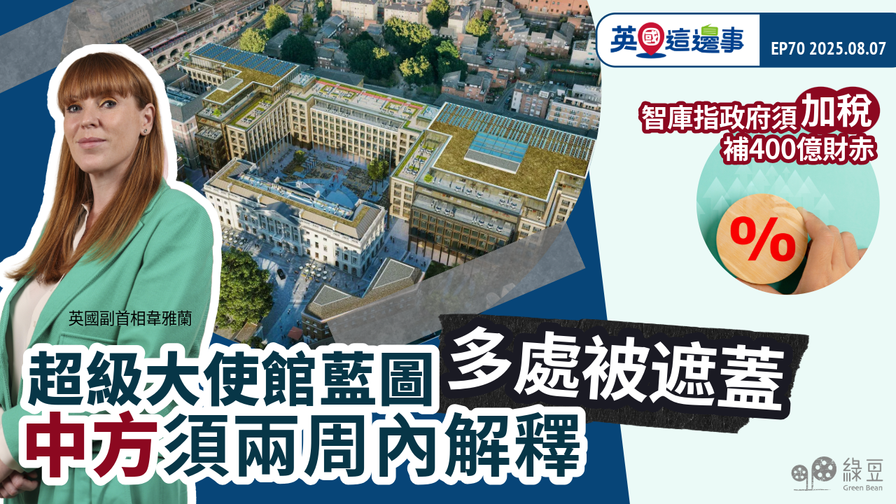 收看節目 超級大使館藍圖多處被遮蓋 中方須兩周內解釋中國申請喺倫敦皇家鑄幣廠舊址興建超級大使館,引起爭議。英國副首相韋雅蘭去信質疑藍圖多處被遮蓋,要求中方於8月20日前交代詳情並補交完整資料。當局須於9月9日前作最終裁決。多個港人組織及人權關注者連續周末示威,憂使館或成「秘密公安局」。智庫指政府須加稅補400億財赤智庫NIESR指,財相李韻晴須於秋季財政預算案加稅,填補逾412億英鎊赤字及預留100億緩衝。報告稱美國貿易戰、借貸利息升及福利削減失敗加劇財政壓力,舉債恐損信心,故須溫和持續加稅。施紀賢反對分析,加稅未明確表態,強調提升民生及減息減輕按揭負擔。失稅務優惠掀公司董事移居潮《金融時報》分析指,英國取消非定居居民稅務優惠並加稅後,出現公司董事離英潮。去年10月至今年7月,有3790人申報移居,較前年同期增近40%。4月新政策生效後情況更明顯,按年增幅高達104%。熱門移居地包括德國、阿聯酋及中國。英法實施非法移民移交「一進一出」英法移交非法移民協議曝光,實行「一進一出」原則:英國遣返一名非法入境者至法國,須接收一名難民申請成功機會較高者,並可在法國申請入英,費用全由英負責。首階段每周約50人,法方可拒收具風險人士。英國同時立法禁止在社交平台鼓吹偷渡,今年已有逾2.5萬人乘小船抵英,創同期新高。調查指媒體影響 約半英人支持零移民YouGov報告指45%受訪英國人支持拒收新移民並要求部分新移民離境,多因誤信非法移民多於合法入境。事實上,非法移民僅估算12萬至130萬,遠低於1,070萬合法外來人口。部分人特別針對攞福利、小艇來英及低技術移民,甚至有兩成人反對醫護移民。保護未成年人上網法例或礙公眾利益BBC調查指英國新社交媒體法例實施後,平台為避罰廣泛自我審查,連國會討論、戰爭與加沙議題也受影響。專家批評做法矯枉過正,或窒礙資訊流通。違規可被罰最高1800萬鎊或全球收入10%。現時用戶須證明年齡,否則無法登入或進入部分內容。示威支持巴勒斯坦行動 警方警告後果自負組織《巴勒斯坦行動》獲法院批准司法覆核,挑戰被列為恐怖組織的決定。《保衛陪審團》計劃周六示威,警方警告支持《巴勒斯坦行動》屬違法,或會大規模拘捕。周四已有三人被控違反反恐法,網站亦遭下架。逾50名學者聯署,促撤禁令,批評政府打壓言論自由,憂影響英國及海外校園。小型飛機急降伯明翰機場延誤航班星期三中午,一架原飛往貝爾法斯特的輕型飛機因起落架故障緊急降落伯明翰機場,機上3人受輕傷。事故導致跑道封閉超過6小時,超過25班航班取消,部分改飛曼城及中部機場,數千旅客受影響。跑道於晚上約8時重開,航班逐步恢復。男子持園藝工具被拘捕兼警誡曼城一名35歲男子攜帶園藝工具返回住所途中,被他人報警指其持有鋒利物品,遂遭警方拘留12小時。警方質疑其中一把工具是否園藝用具,並詢問「allotment」意思,期間拒絕其尋求律師協助。該男子雖同意`接受警方警誡,惟憂慮事件影響日後求職,現正計劃挑戰拘捕及警告決定,並申請取回被扣押工具。 ...