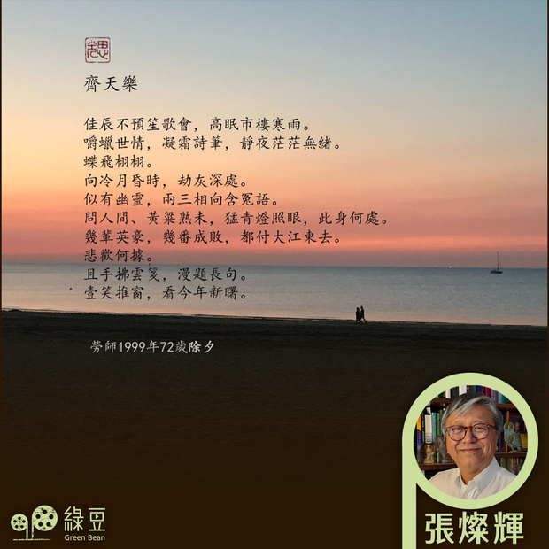 轉𣊬已是第四年離家流亡海外,世局仍然是迷亂之中:烏俄、以巴的戰爭,西方自由世界和共產中國的決裂和衝突、大陸軍事威脅台灣、以至香港繼續沉淪等等,都似乎沒有樂觀的展望理由。 近日重讀業師勞思光先生的詩詞,看到他在上世紀末(1999年,72歳)除夕一首詞: 齊天樂 佳辰不預笙歌會,高眠市樓寒雨。 嚼蠟世情,凝霜詩筆,靜夜茫茫無緒。 蝶飛栩栩。...
