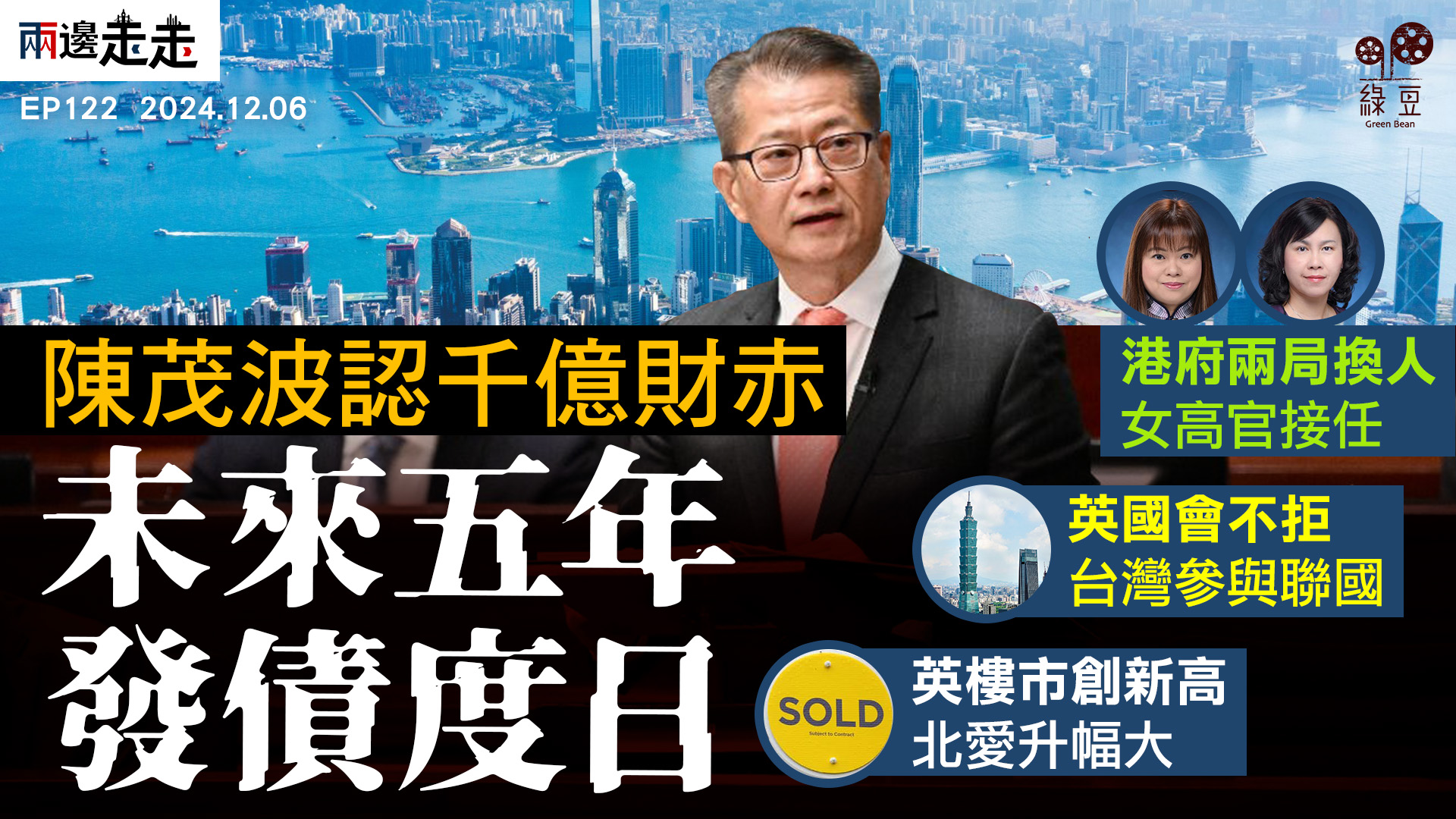 • 收看節目 究竟要經過幾多年赤字,財政儲備才回復盈餘? 去年財政預算案推出時,陳茂波估計,除2023/24年度錄得赤字外,餘下四個年度均可達致盈餘,但社會留意到的,是政府的財政儲備節節下跌。到十月時,他的口風似乎放軟,但仍然信心十足。 新一期財政預算案諮詢一開始,陳茂波的立場就變得愈來愈快,他先在上個月寫網誌,題目為「一齊做大個餅」,但內文就寫道:「下年度繼續出現赤字的機會不能抹殺」,到諮詢活動時更說,要預算未來數年都會有財赤。想知道本屆特區政府要多大決心解決財赤問題,請收看EP79《兩邊走走》的編輯推介。 本集重溫:https://youtu.be/C_1OazVb-wo...