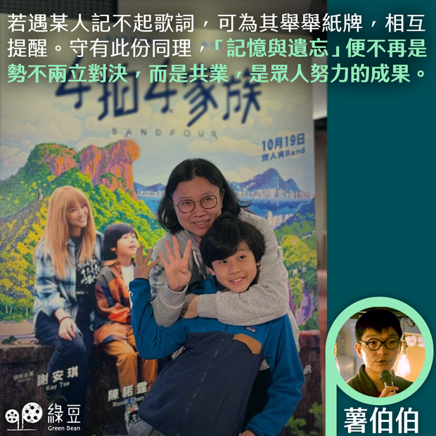 看《4 拍 4 家族》,完場時,字幕升起,觀眾專心看工作人員名單,沒人離開,燈光忽然亮起,銀幕前方居然站著演員鼓手Rondi 小朋友,還有如何認真但樣子總有點喜感的 Banky。...