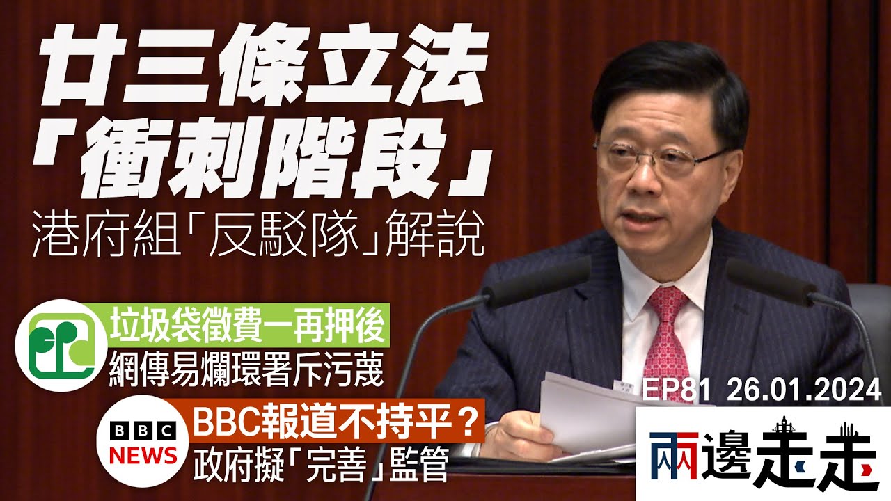 收看節目 兩邊走走|第81 集|2024.01.26 港府新猷反駁隊助廿三條立法;官員再跪低垃圾徵費再押後;英文化大臣指BBC不中立證據欠奉 今集內容: 01:26...