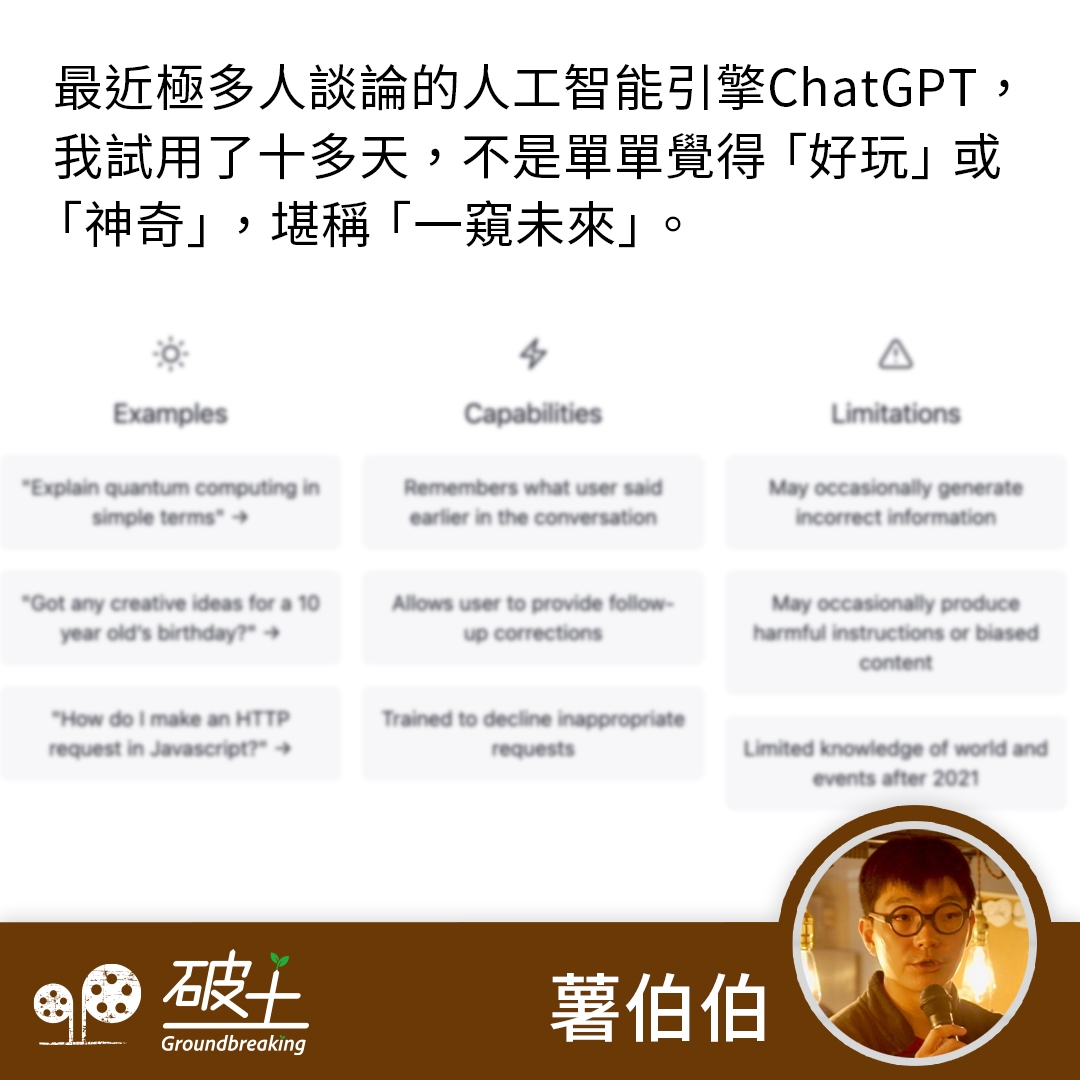 前文介紹過人工智能的語言工具,效果極為驚人,甚至令人覺得是「一窺未來」的科技。面對這種技術,自己也不禁會問,這些工具會否取代人類? 最近有教師在網上貼文(註一),稱發現有學生使用人工智能寫作器做功課,老師使用OpenAI偵測器(註二)發現學生習作有問題,當學生面對質詢時也只好坦白承認借助AI做功課。老師之所以發現學生借助人工智能出術,在於文章以完全錯誤的方式,自信兼徹底地描述哲學家休謨對恐怖悖論的看法,內容胡說八道,因而引起老師懷疑。 ChatGPT雖然強大,但也經常會出現近乎笑話的錯誤,例如在ChatGPT 輸入:「《苦海孤雛》的狄更斯與《連城訣》的狄雲有何相似之處?」 ChatGPT的回應如下(節錄): 「《苦海孤雛》和《連城訣》都是狄更斯的小說,並且都描述了苦難的人生經歷。《苦海孤雛》講述的是小說主人公尼古拉·卡爾維茲在苦難中度過青春期的故事。《連城訣》則講述的是城市中的貧窮和社會不平等。」...
