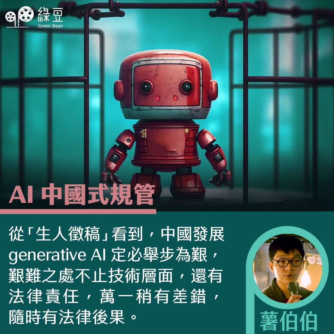 中國國家互聯網信息辦公室在今年 4 月,公佈了《生成式人工智能服務管理辦法(徵求意見稿)》( 下簡稱「生人徵稿」),雖說是徵求意見稿,但結合政治與科技的佈局預估也大概露出其端倪,其包含的管理範圍不止是語言模型,還列舉了圖片、聲音、視頻、代碼的生成工具(註一)。「生人徵稿」第四條列明,AI 產品必須「尊重社會公德、公序良俗」,並強調必須體現「社會主義核心價值觀」,還寫明:「不得含有顛覆國家政權、推翻社會主義制度,煽動分裂國家、破壞國家統一,宣揚恐怖主義、極端主義,宣揚民族仇恨、民族歧視,暴力、淫穢色情信息,虛假信息,以及可能擾亂經濟秩序和社會秩序的內容」。本來要求 AI 生成的內容「應當真實準確,採取措施防止生成虛假信息」,這點沒太大爭議,但以「辦法」形式實施,還提及...