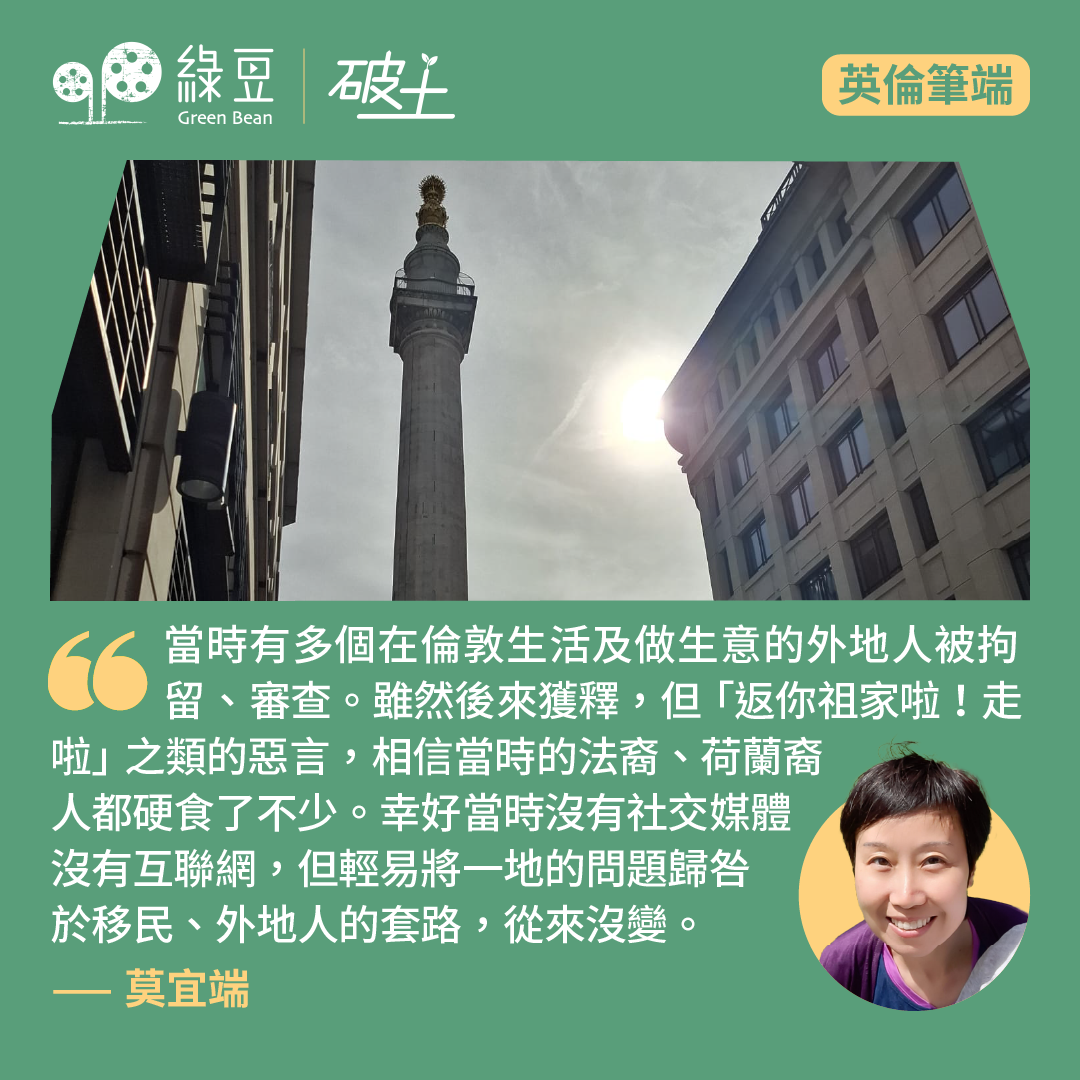 跟酷愛古建築的另一半同行,常有意外收穫。9月6日初秋,我「掹衫尾」參加工程師學會的「倫敦大火」導賞團,又有機會出城走走。 真慚愧,在倫敦留學前後四年,只有坐地鐵途徑Monument紀念碑站,卻從沒到訪豎立站外202呎高的大火紀念碑。導賞團由皇家規劃師學會資深成員Lester叔叔帶隊。從建築、城市規劃的視角,又是長知識的好時機。 下而上的大火敍事1666倫敦大火(Great...