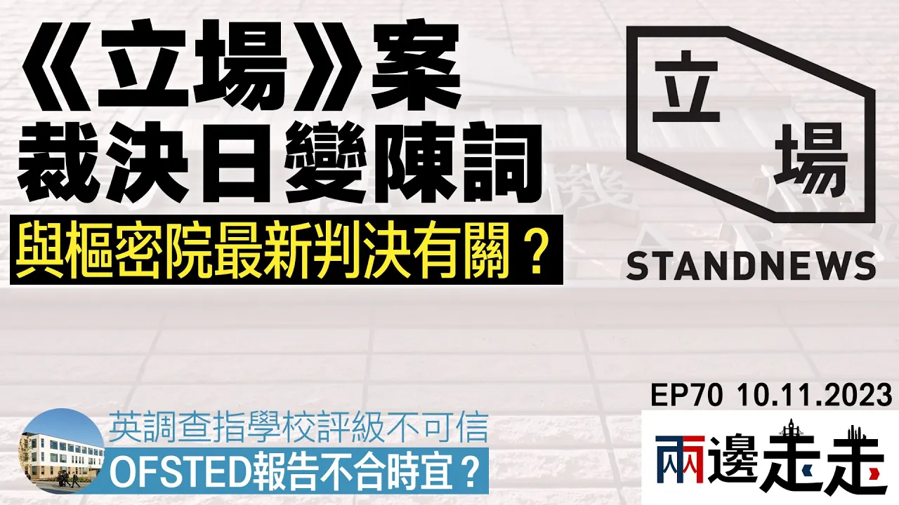收看節目 兩邊走走|第70 集|2023.11.10 英國樞密院一項最新決定,令香港《立場》案原定裁決日押後;Ofsted學校評級被批評,「Outstanding」「Good」就代表「好」?今集內容:...